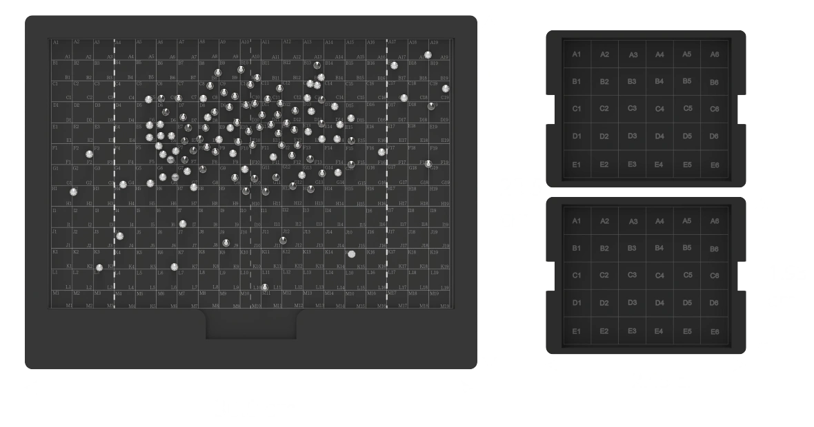 Grid layout mark on tray to easily locate position of diamonds.